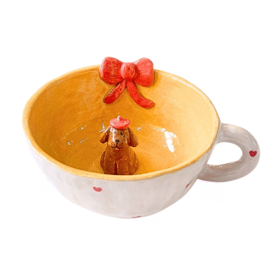 Lindo Crafts – Bow and Heart Short Mug with Dog Inside
