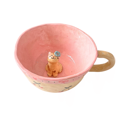 Lindo Crafts – Cherry Pink Short Mug With Cat Inside