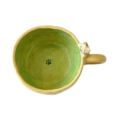 Lindo Crafts – Pink Flower And Paw Prints Short Mug With Cat on The Rim