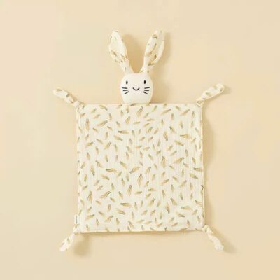 Bunny Muslin Comforter Blanket With Rice Leaves Pattern