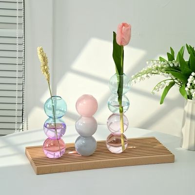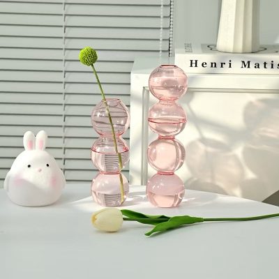 Short Bubble Glass Vase in Pink