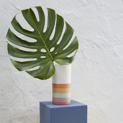Bat Trang Short Vertical Line Ceramic Vase With Handle