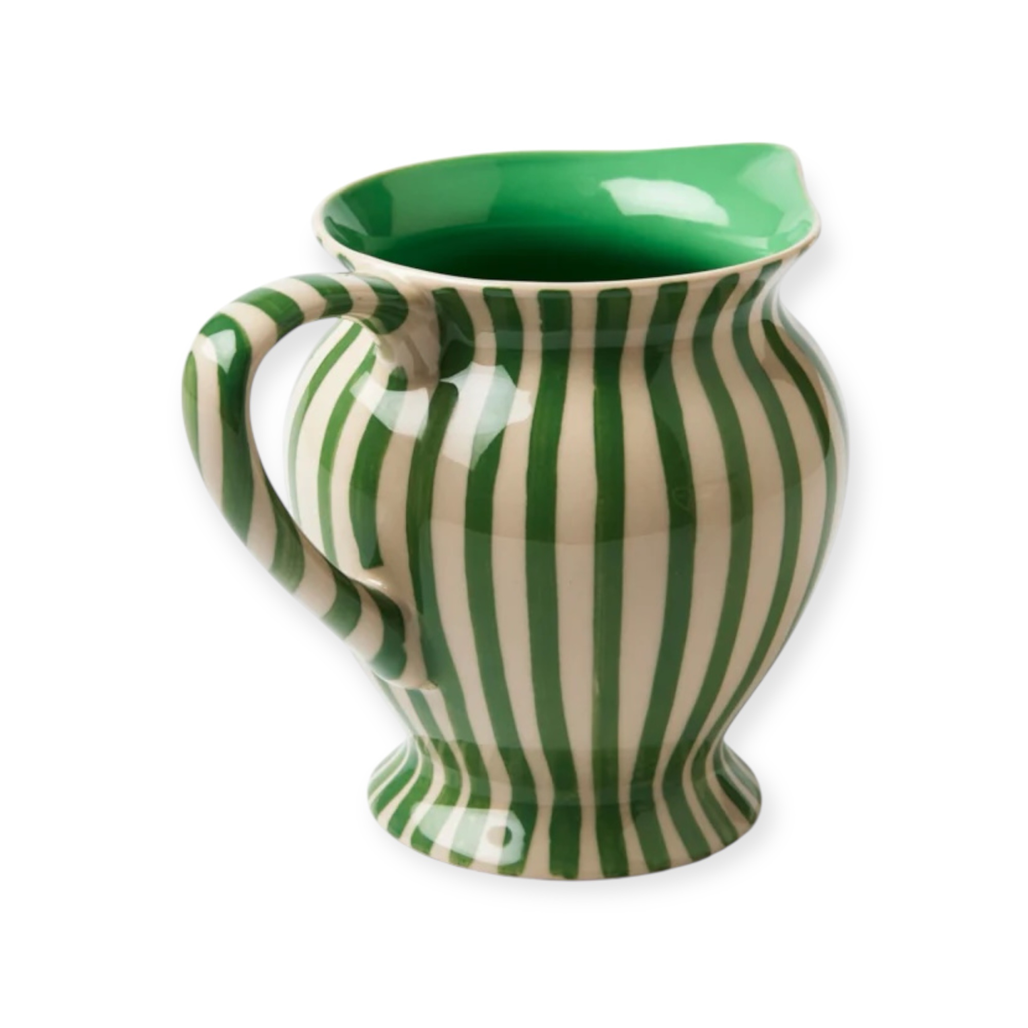 This stunning Bat Trang ceramic pitcher is a true gem! The beautiful green stripe pattern is hand-painted with precision and care, showcasing the artistry of traditional Vietnamese pottery. With its elegant design and vibrant color, this pitcher is perfect for serving refreshing drinks, displaying fresh flowers, or as a decorative accent. The green stripe adds a touch of freshness and sophistication, making it a unique and functional piece for any room. Whether you’re hosting a dinner party or just want to add some cultural flair to your daily routine, this pitcher is sure to impress. Its handcrafted beauty and charm make it a truly special addition to any home decor.