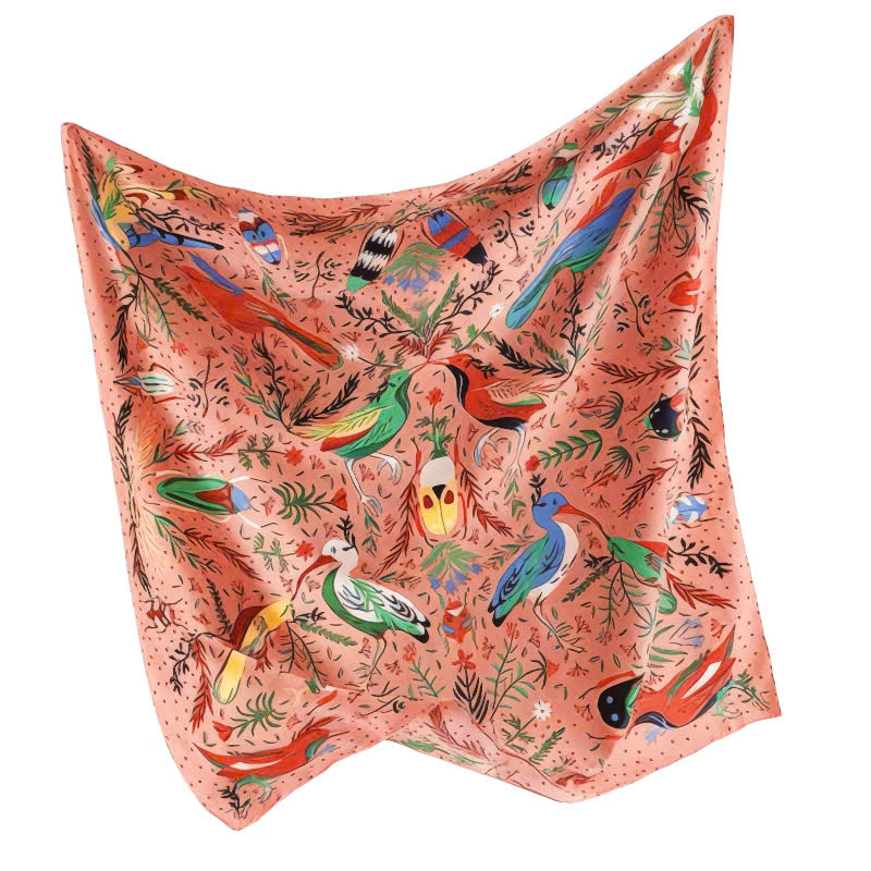 Birdy Paradise Square Scarf in Peach