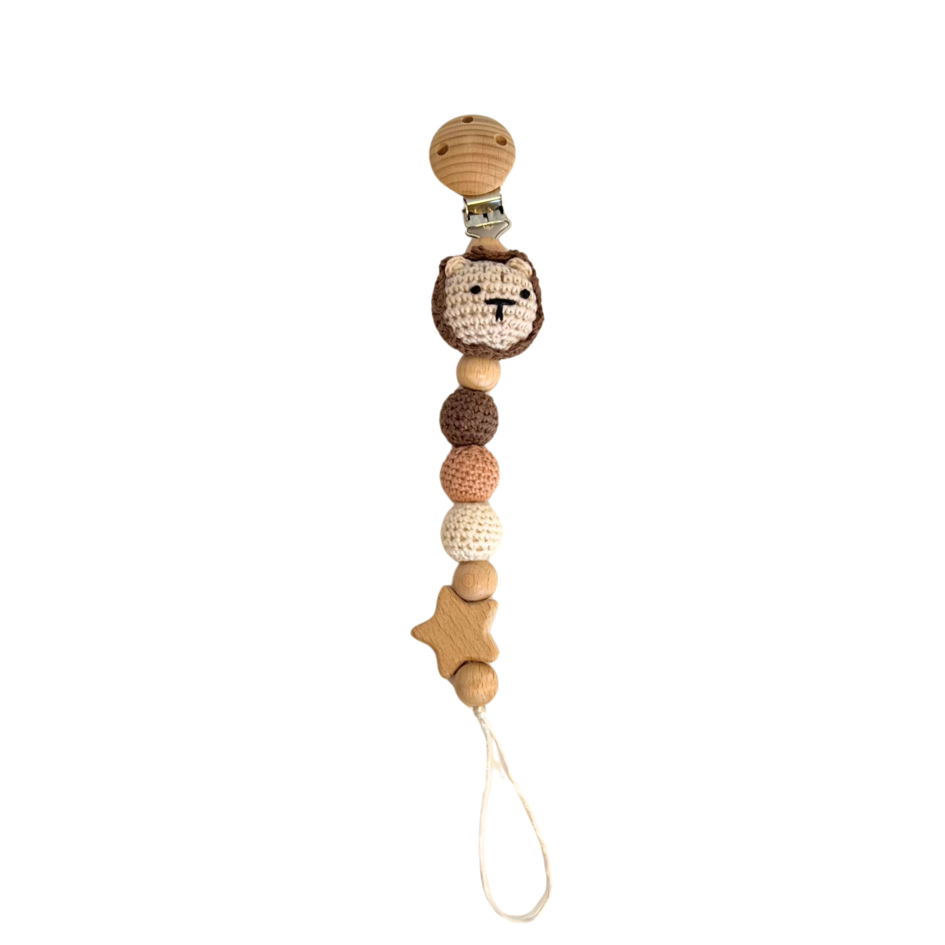 Introducing our Crochet & Wood Pacifier Clip, meticulously designed with both style and functionality in mind. This charming accessory ensures your baby’s favorite pacifier is always within reach while adding a touch of adorable elegance. Crafted from food-grade silicone wood and 100% organic cotton, our pacifier clip is chewable and safe for your little one. It’s free from BPA and lead, providing peace of mind for parents. Perfectly blending practicality with aesthetic appeal, our Crochet & Wood Pacifier Clip is a must-have for any modern parent. Keep your baby’s pacifier secure and stylish with this delightful, eco-friendly accessory.
