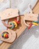 Our Wooden Animal Rattle Toy is a delightful sensory experience for little ones, expertly crafted to captivate and engage your baby’s developing senses. Made from sustainable, non-toxic wood, this charming rattle features multiple animal shapes, including a bunny, bear, and koala, with gentle rounded edges perfect for tiny hands to grasp and explore. The soft, soothing rattling sound encourages baby to shake, listen, and respond, helping to develop their auditory skills and hand-eye coordination. As they grasp and manipulate the rattle, they’re strengthening their tiny muscles and refining their motor skills. A thoughtful gift for baby showers or a lovely addition to any nursery, this timeless wooden rattle is a treasured keepsake for years to come, fostering a love for play and discovery.