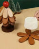 Add a touch of rustic charm to your holiday decor with this delightful set of 4 wooden coasters, shaped like Christmas trees and topped with a bright red apple. Crafted from natural wood, these coasters feature a warm, earthy tone that complements any holiday table setting. The festive design and sturdy construction make them perfect for protecting surfaces from water marks and spills, while adding a cozy touch to your holiday gatherings. The adorable apple topper adds a playful pop of color and whimsy to each coaster.