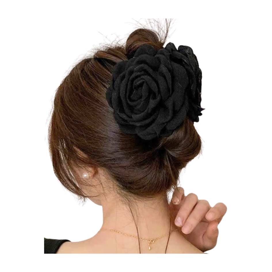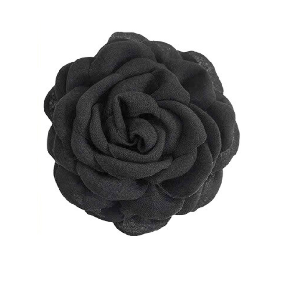 Fabric Flower Hair Claw in Black