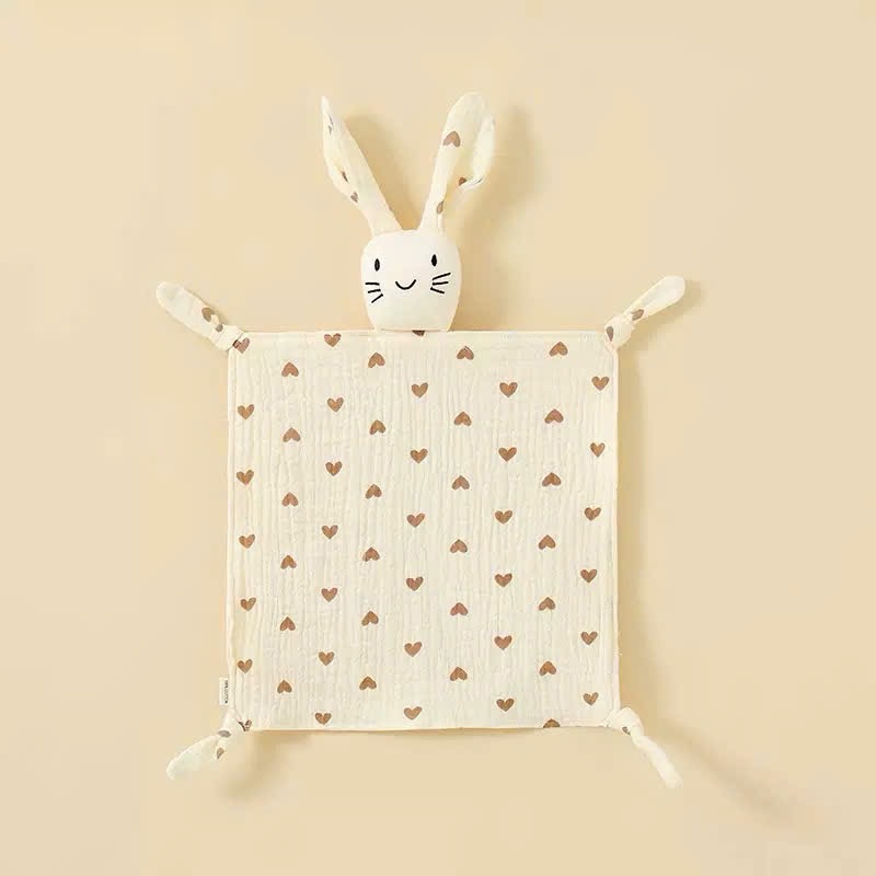 Bunny Muslin Comforter Blanket With Brown Hearts Pattern