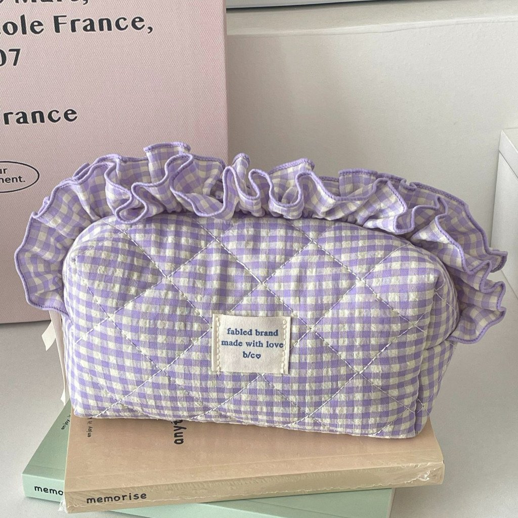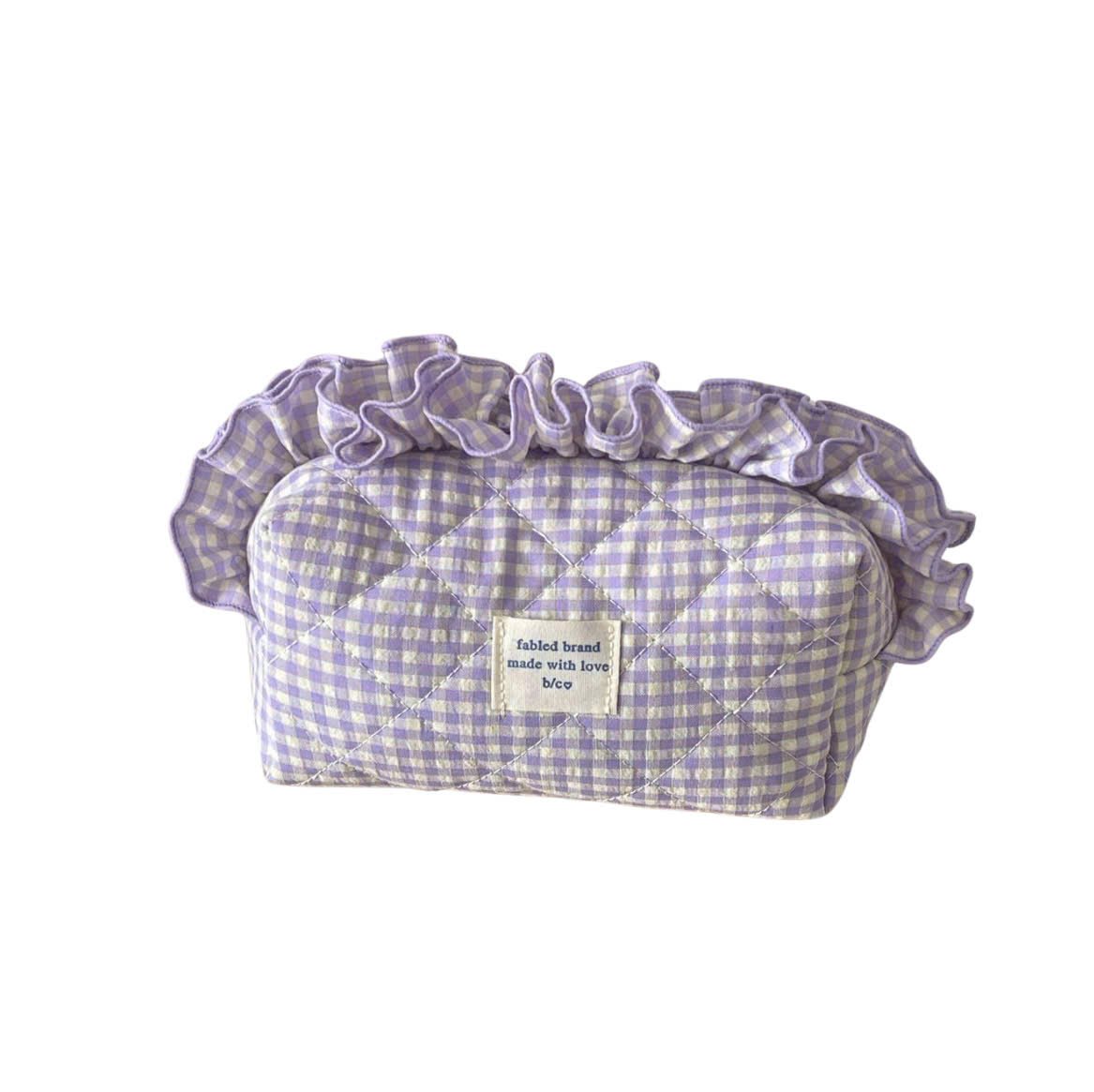 Make Up Pouch in Lilac With Ruffle Fabric
