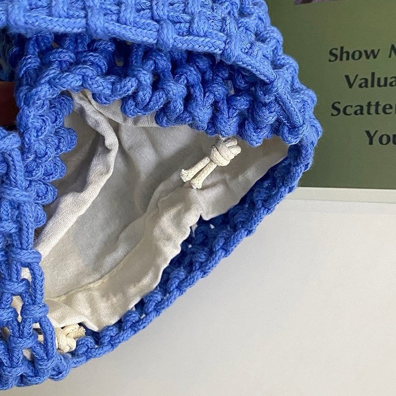 - Intricate Macrame Design: Handcrafted with meticulous attention to detail, the Mini Macrame Hand Bag showcases beautiful knot patterns that add a touch of bohemian elegance to your look. Each piece is uniquely made, ensuring you have a one-of-a-kind accessory.