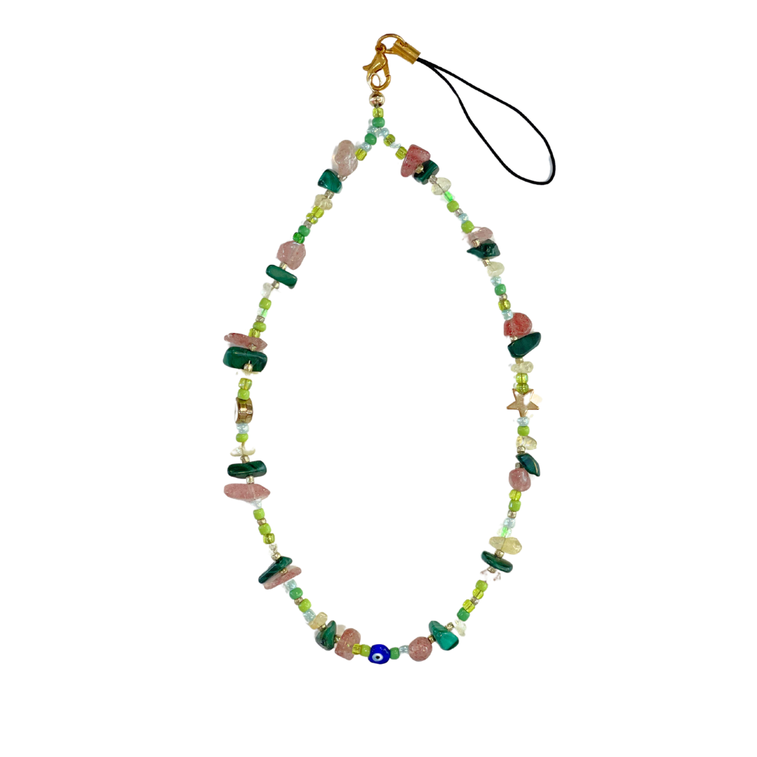 Miya – Green Beads & Rose Quartz, Peridot Phone Chain