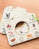 Help your baby take their first steps into language with this beautifully crafted wooden vocabulary book. Each page features a simple illustration and the name of a familiar object or animal, encouraging early word recognition and language development.