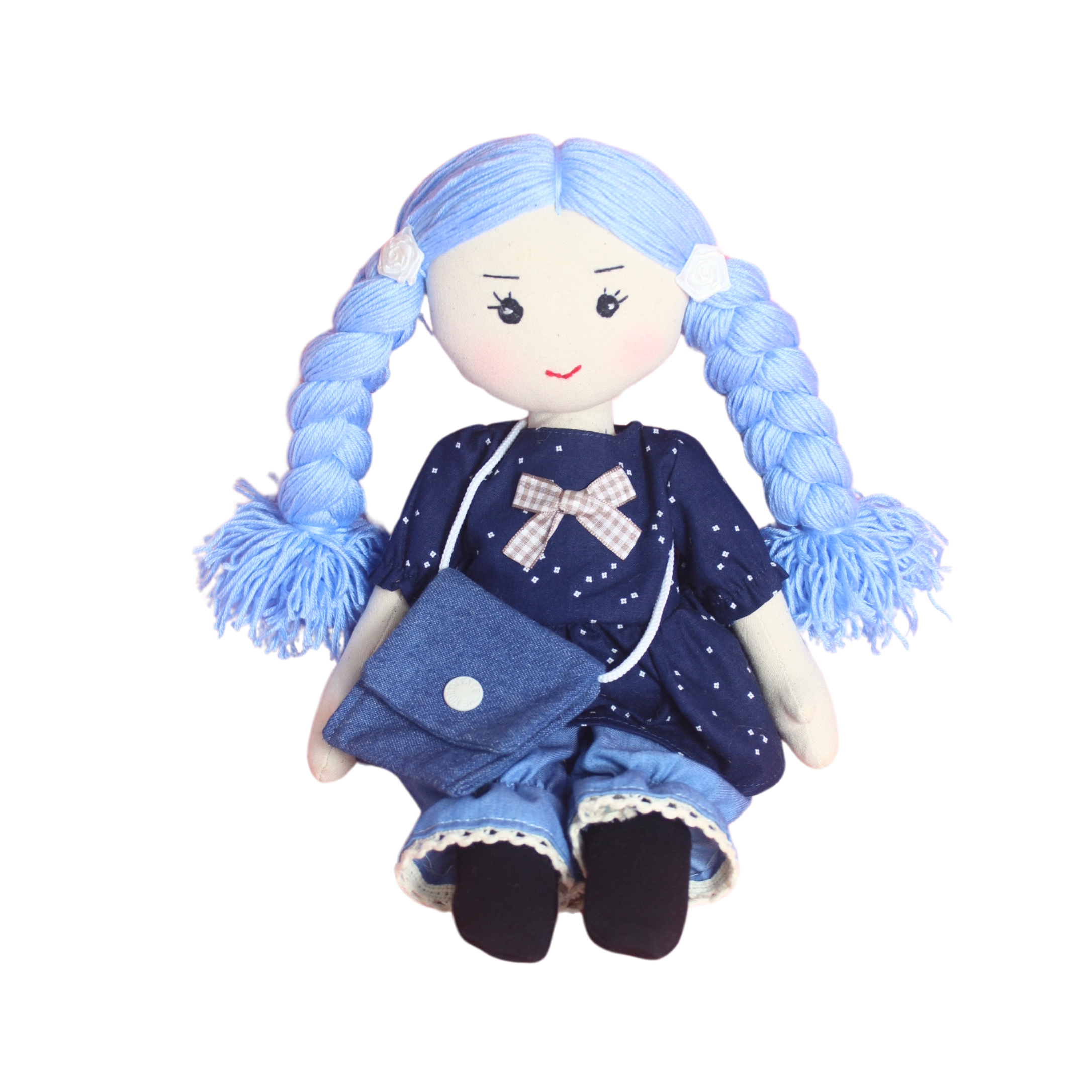 Rung Handmade – Anne Doll in Blue Hair and Denim Outfit