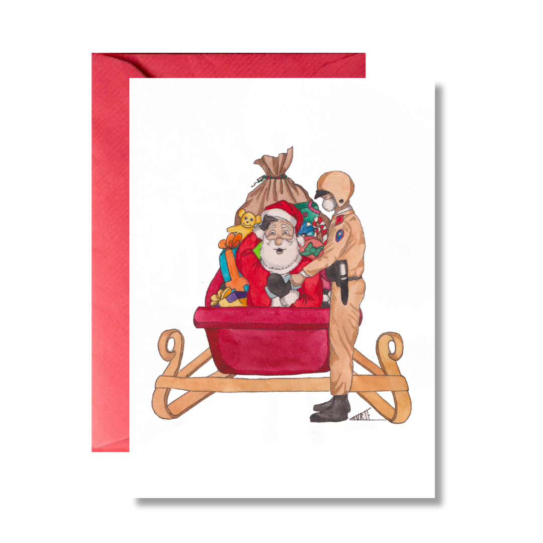 ‘Santa vs Policeman’ Christmas Card by Laurie Draws