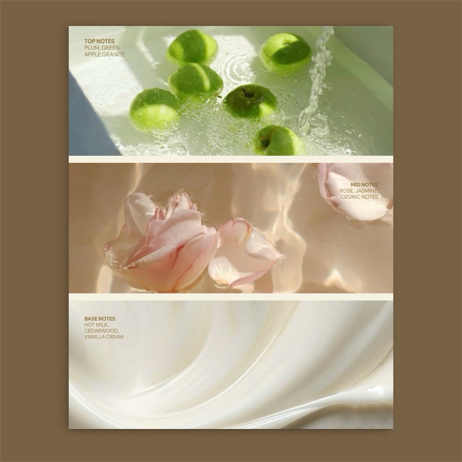 – Top: Plum, Green Apple (fresh and sweet)