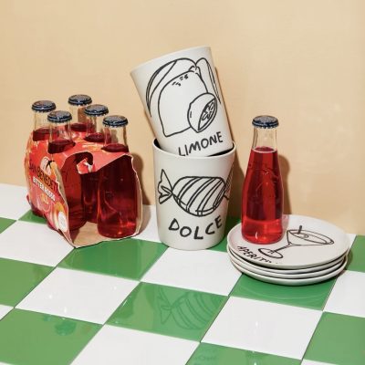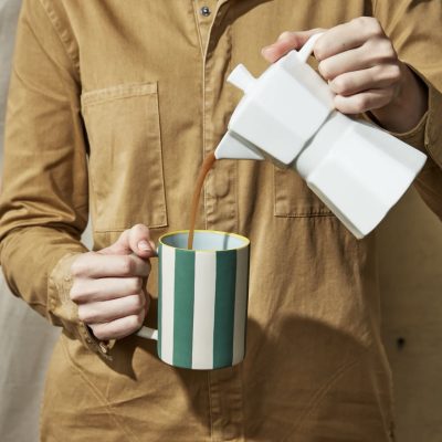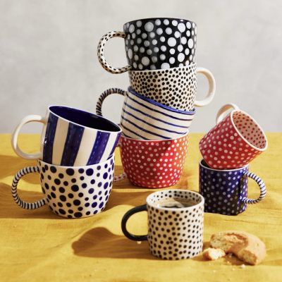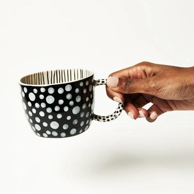 Bat Trang Ceramic Short Mug In Big Black Polka Dot with Stripe Inside