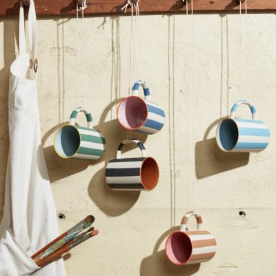 Bat Trang Ceramic Short Mug In Navy Line with Polka Dot Inside