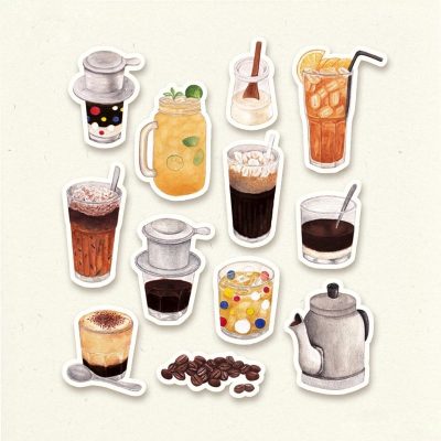 Phanhshi Studio – “Vietnamese Coffee” Watercolor Stickers Sheet